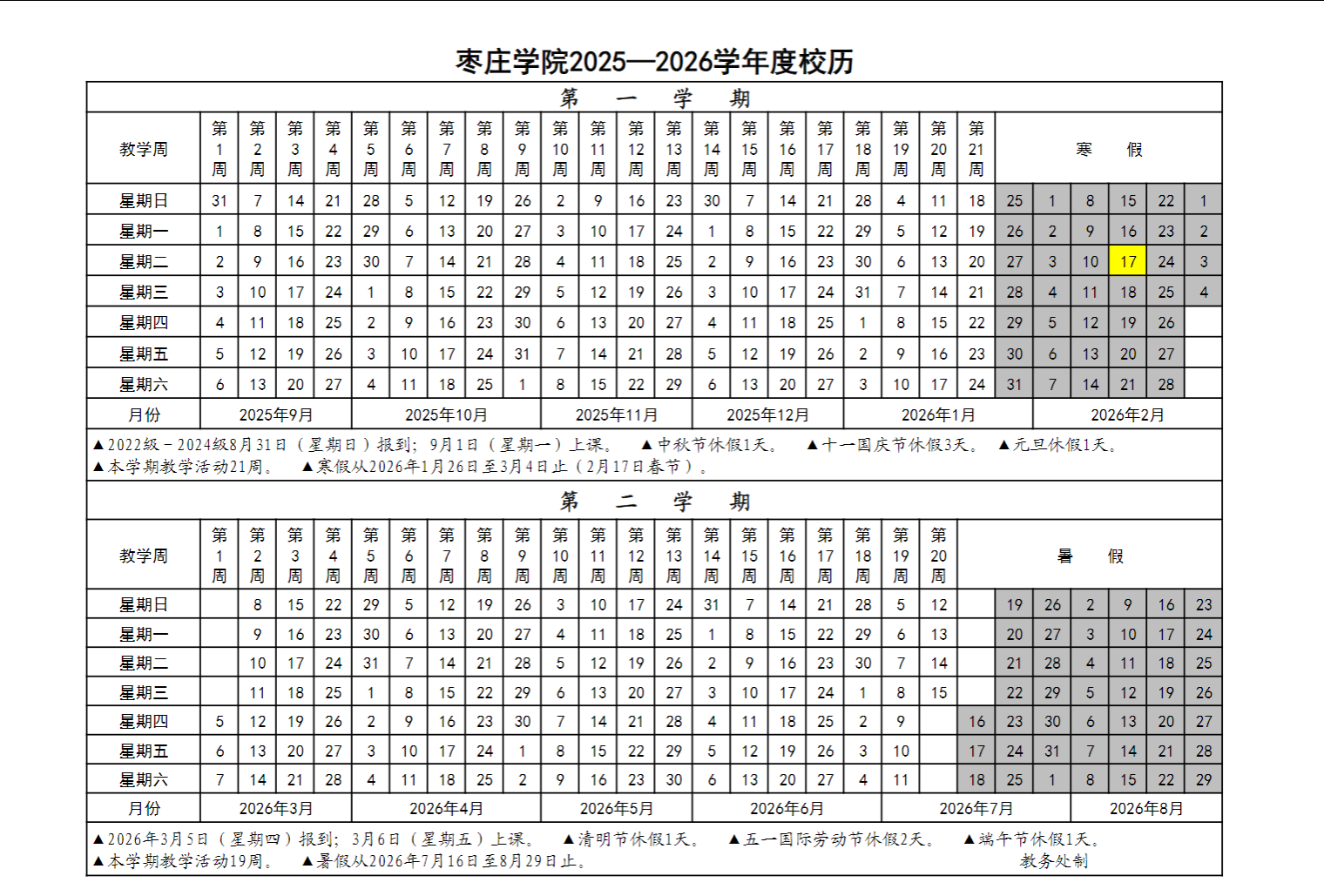 DB视讯2025—2026学年度校历-DB视讯教务处