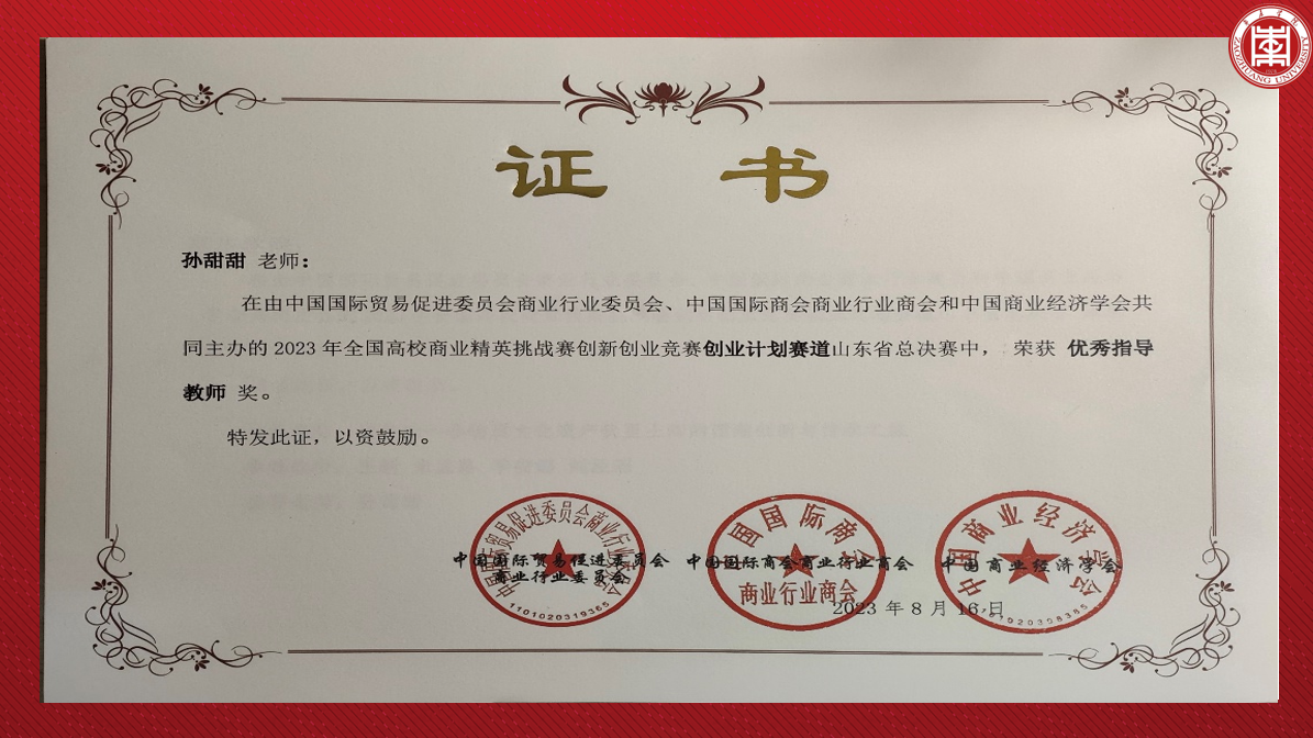 近日,2023年全国高校商业精英挑战赛创新创业竞赛(创业计划赛道)山东省总决赛落下帷幕,创业计划赛道共有来自全省70多所院校的848支队伍入围。由公司代超越、王新两位参赛选手所带领的2个原创项目代表DB视讯成功入围省级决赛,与全省众多高校同台竞技、力克群雄,并斩获山东省三等奖2项。展现了公司学子扎实的专业能力、卓越的创新精神和出色的团队协作能力。其中公司教师杨金磊、孙甜甜荣获“优秀指导老师”奖。