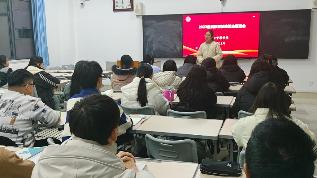 为深入学习贯彻习近平新时代中国特色社会主义思想,进一步提升老员工对民族宗教政策法规的认识,切实增强政治意识观念,铸牢中华民族共同体意识。11月28日,db真人体育官网在豁然楼A317室举办民族宗教政策法规宣讲主题教育活动,2023级新生代表参加。