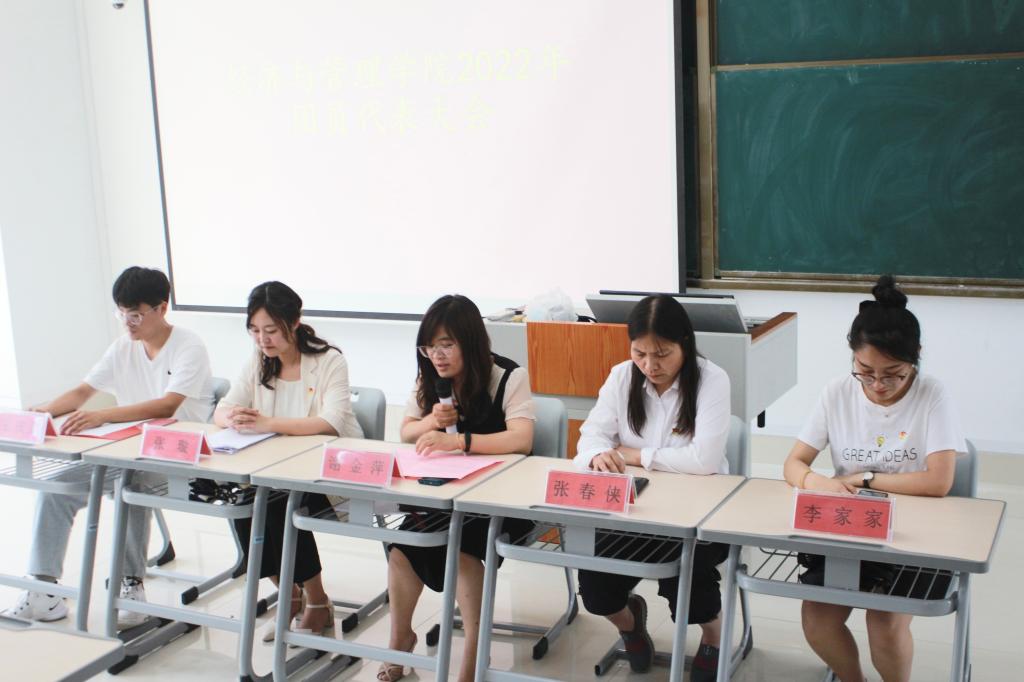2022年6月8日下午,共青团db真人体育官网第一次团员代表大会于增信楼3318室举行召开,出席大会的嘉宾有经济与管理公司党总支副书记谢金萍,公司团总支副书记张璇,辅导员张春侠、李家家及db真人体育官网各团支部团员代表。本次会议由2021级营销外包本科一班代超越主持,会议应出席代表119名,实到代表116名。此次代表大会的主要任务是听取并审议公司团总支工作报告、选举产生共青团db真人体育官网新一届委员会委员。