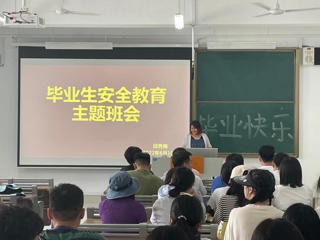 为提高毕业生安全意识,保证毕业生安全毕业文明离校,6月10日,db真人体育官网于增信楼3210、3211、3212召开毕业生安全教育主题班会。班会由辅导员邱秀梅主持,2018级毕业生、2020级部分员工参加。
