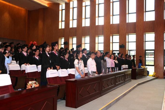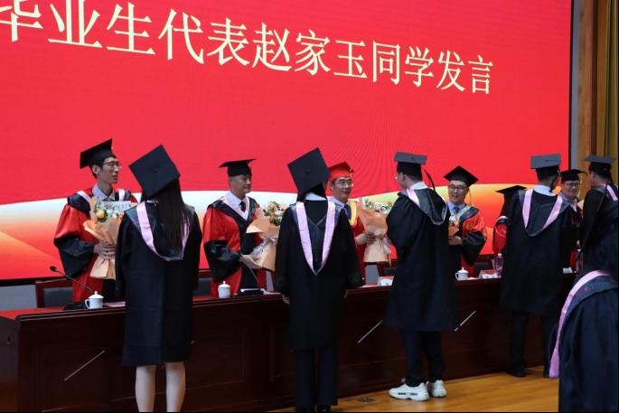 谢金萍隆重介绍了与会的各位领导、嘉宾和老师,并代表公司向2023届毕业生致以最诚挚的祝贺。在同学们的热烈掌声中,杨位留宣读了学士学位授予决定,安涛为毕业生一一拨穗并授予学士学位证书,为他们送上毕业祝福并合影留念。