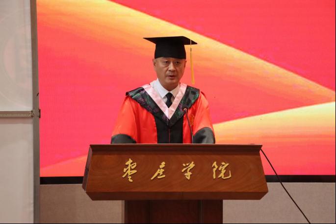 毕业生代表赵家玉在发言中回忆了从北安路一号到民生南路一号美好的4年枣院时光,表达了对母校和老师的感恩感谢,表示将怀揣梦想,扬帆远航,践行“请党放心,强国有我”的青春誓言;校生代表代超越在发言中向即将离开校园的师哥师姐们表达了敬意和祝福,并表示将继承他们的优良学风,为公司的发展贡献自己的一份力量。