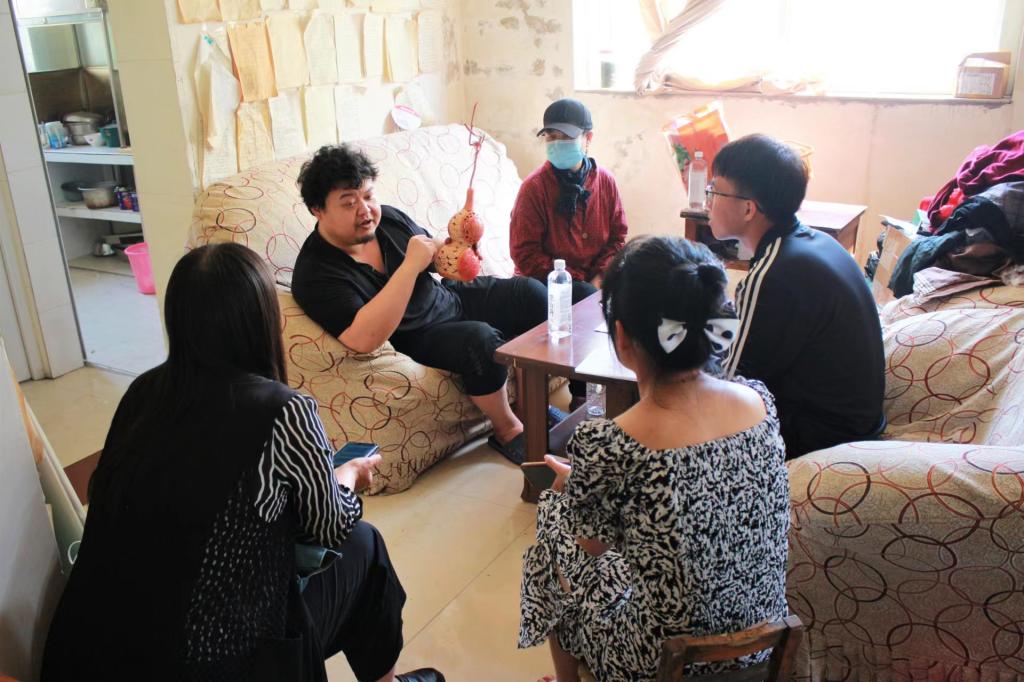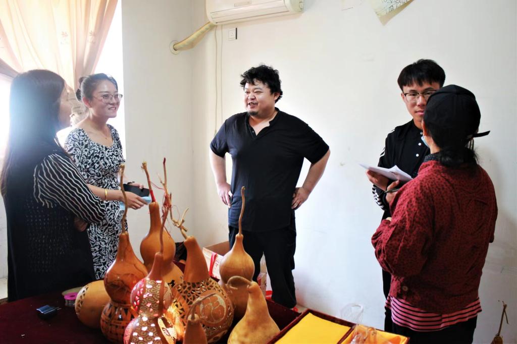 5月27 日上午,db真人体育官网辅导员张春侠、李家家,员工代超越、解鑫品、毕莹雪一行5人来到枣庄市市中区福泉花苑,对非遗保护项目烙画葫芦代表性传承人王超及烙画葫芦传承、未来发展合作情况进行了解调研。