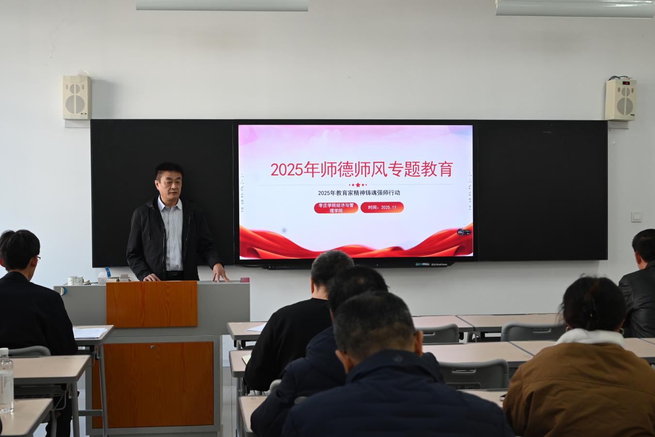 为全面落实新时代师德师风建设要求,引导教师坚定“立德树人”初心使命,提升教师职业道德素养与育人能力,11月5日,db真人体育官网在豁然楼A317召开师德师风专题教育大会,全体教职工参加会议。