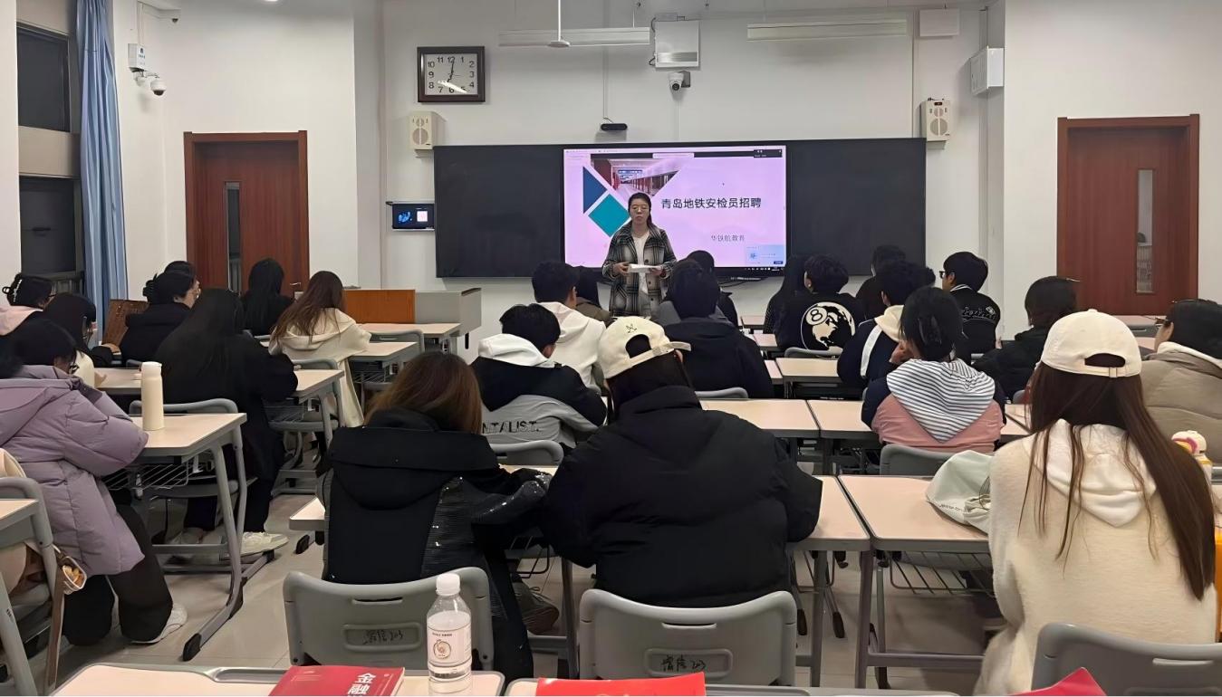 为深入推动“青鸟计划”落地见效,进一步拓宽毕业生就业渠道,精准搭建毕业生与优质企业之间的双向交流平台。11月6日晚7点,db真人体育官网在增信楼3203教室成功举办青岛地铁安检员就业双选会。本次宣讲采取线上线下相结合的方式,吸引了公司众多毕业生踊跃参加。