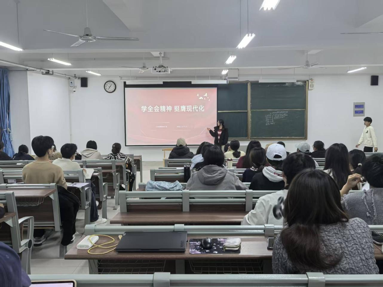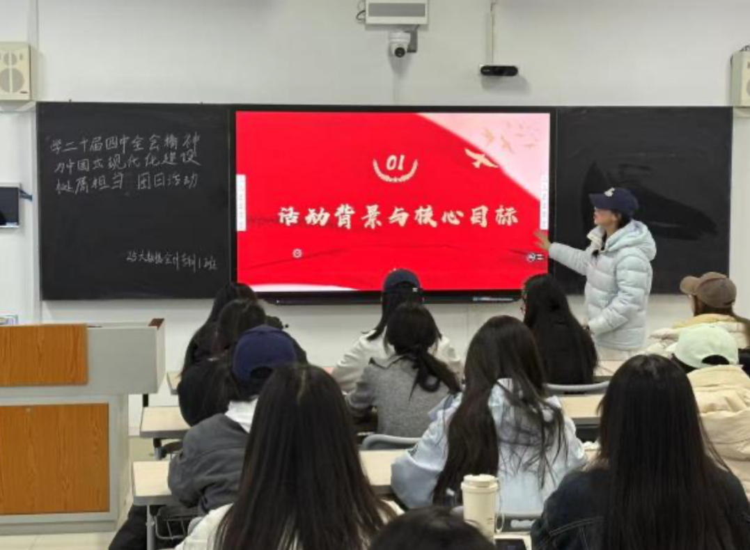 活动中,各班团支书围绕《中国共产党第二十届中央委员会第四次全体会议公报》核心内容,结合PPT展开系统领学,重点解读全会重要战略部署、发展目标以及对青年的期望,帮助同学们更加准确把握精神实质。