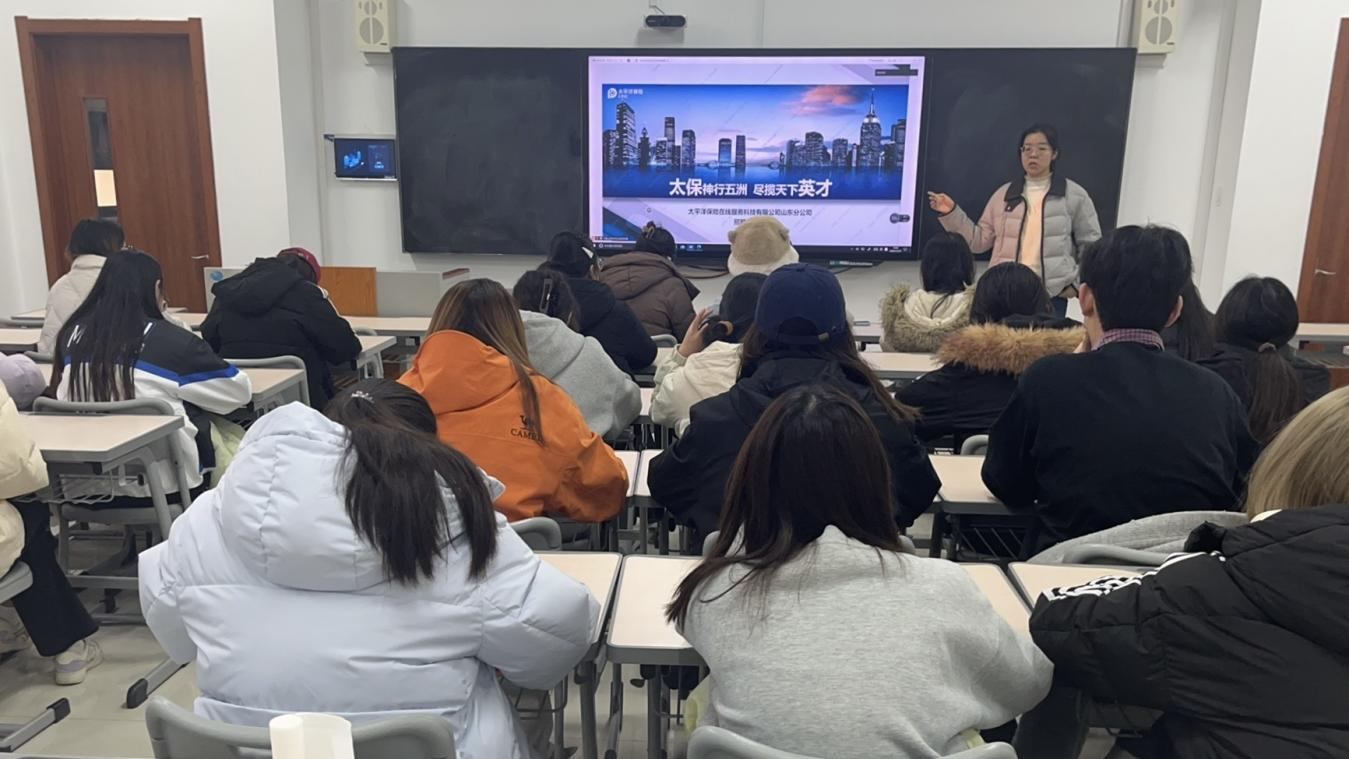 为搭建精准高效的校企对接平台,拓宽毕业生就业渠道,推动员工实现更高质量就业,12月19日下午,db真人体育官网在增信楼203教室举办太平洋保险在线服务科技有限公司山东分公司专场招聘宣讲会。本次活动采用“线上+线下”同步进行的方式,吸引了众多毕业生参与。