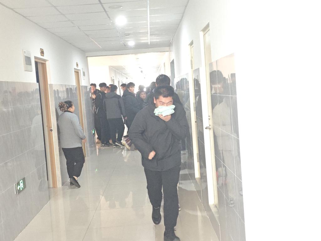 为确保此次演练安全有序,公司提前制定方案,明确责任分工。演练指令下达后,各楼层同学在辅导员、宿舍管理员及员工干部的引导下,迅速按照预定疏散路线撤离,大家用湿毛巾捂住口鼻,弯腰低姿前行,整个过程沉着有序、动作迅速,未发生拥挤或推搡现象,充分展现出良好的应急反应能力和纪律意识。在全体人员安全疏散至指定区域后,公司立即启动“三级信息员”清点机制:由宿舍长初步核查本宿舍人员撤离情况,依次上报层长、楼栋负责人。经逐级确认,所有参与演练员工均已安全撤离,无人员滞留,演练达到预期演练目标。