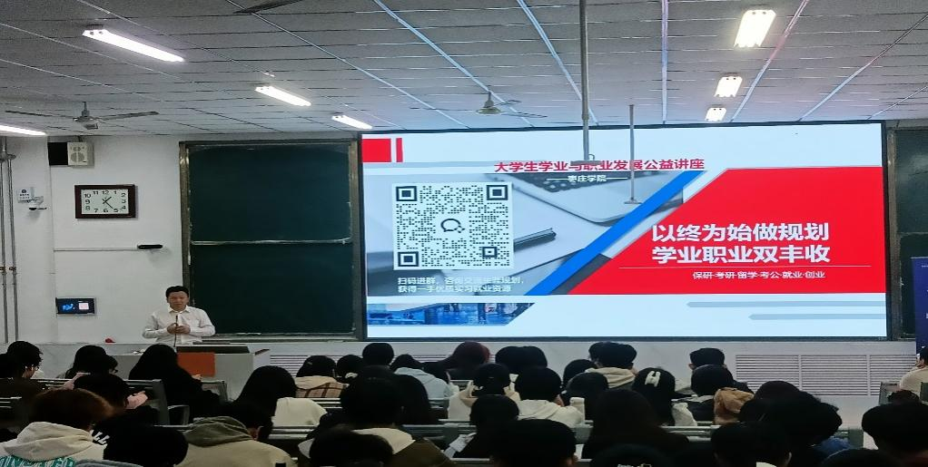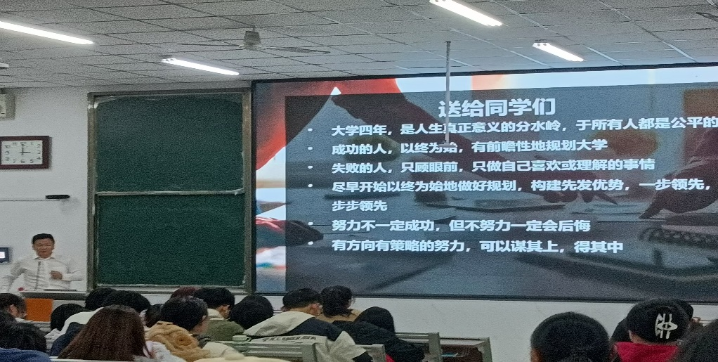 为引导老员工树立正确的择业观和就业观,帮助大一新生尽早明确学业规划方向,2024年11月13日晚,db真人体育官网在增信楼211教室举办了老员工生涯规划公开讲座。此次讲座特邀华普亿方科技集团生涯规划专家鲍俊浩担任主讲,吸引了2024级共计160余名同学参加。