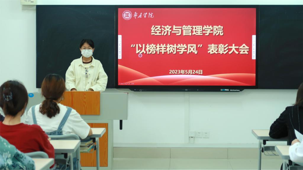 为进一步深入贯彻习近平新时代中国特色社会主义思想,围绕立德树人根本任务,充分发挥先进典型的示范引领作用,推进学风建设,5月24日下午,db真人体育官网于豁然楼A317室召开“以榜样树学风”表彰大会。党总支副书记谢金萍,全体辅导员及员工代表出席本次大会,张春侠主持会议。