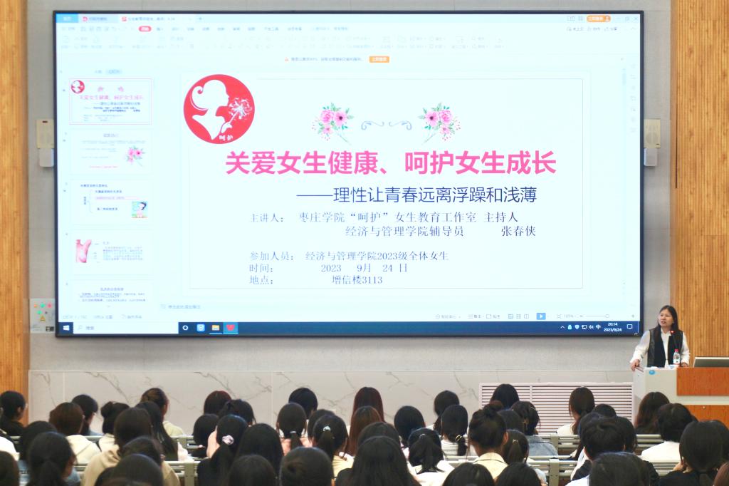 为帮助女老员工掌握生殖健康知识、养成健全的人格,引导她们树立正确的人生观和价值观,提升自我保护意识和能力。9月24日晚,db真人体育官网在增信楼3113举办“关爱女生健康、呵护女生成长”教育讲座,辅导员张春侠主讲,2023级全体女生参加。
